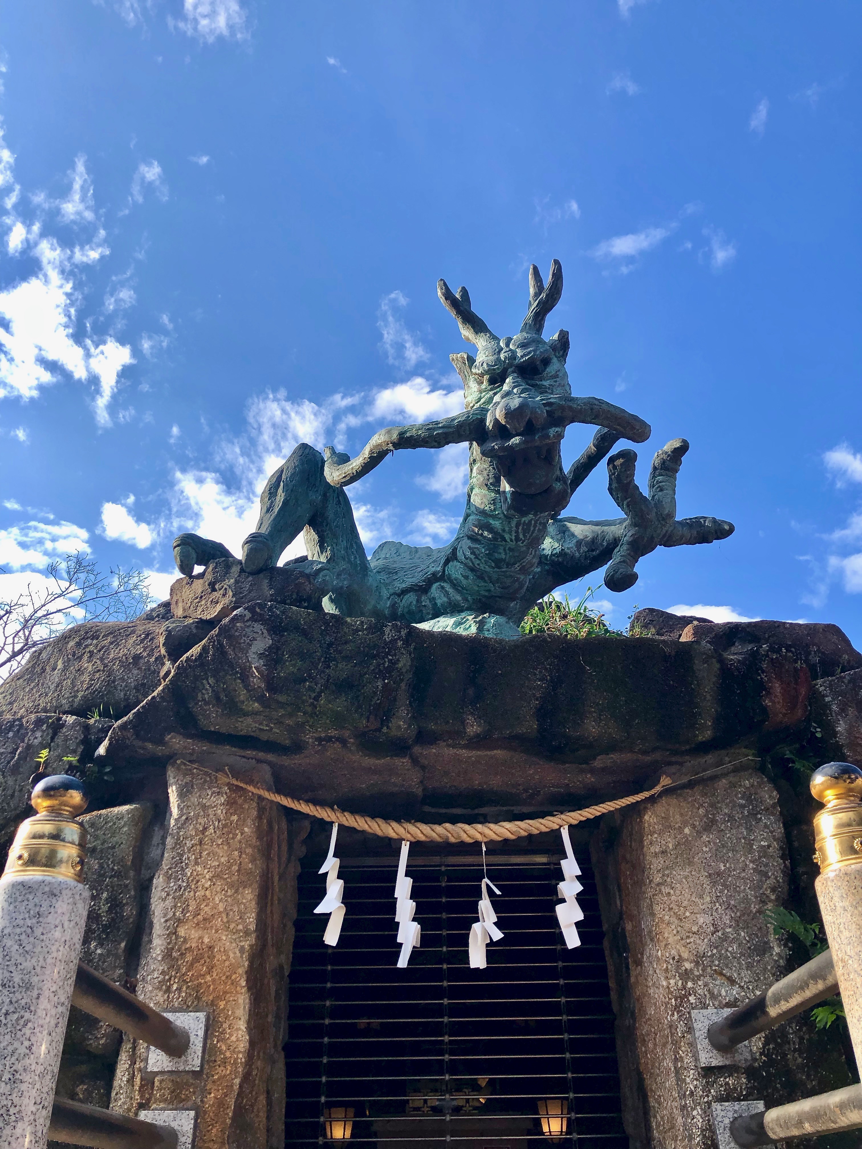 Once we had of fill of the aquatic wonders, we took a stroll over the Enoshima Bentenbashi Bridge to the actual Island of Enoshima to try and find the tides pools and perhaps the Iwaya Caves. Once on the Island we continued straight ahead towards the Hetsunomiya main shrine. We didn’t climb the steps to cross the tori gate and enter. Instead, we continued on with good ol’ google maps directions and veered off. A short walk up hill later, we ended up wandering through Okutsunomiya Shrine grounds, the oldest shrine of Enoshima. We happened upon the Wadatsumi-the dragon shrine and had to take a few minutes to snap photos of the large dragon sculpture on top.