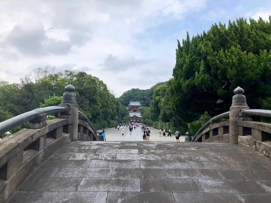 When we arrived in Kamakura our leads walked us to Komachi Dori, a street filled with with small shops selling everything; clothes, chopsticks, coin purses and candies. There were little walk up food vendors selling street food that you could sit on a bench and eat as well as small sit down restaurants. Kyle and I decided to venture on our own to figure out what to eat. We walked the length of the street and back… twice and couldn’t figure out what we wanted to try. I finally pulled the trigger and suggested we just get steamed buns. Kyle shrugged. He struggles with weird foods so he wasn’t making the choice. So, I bravely approached the young man at the walk up counter and asked if he spoke any English. He smiled and said very little. I asked “What meat is in this?” as I pointed to the bun. With his relief clear that he understood me, he said, “Pork!” So I ordered 2 and Kyle forked over the Yen. We sat quietly on little stools next o the counter to try out what hopefully was actually Pork buns. Kyle called them mystery rolls. They were warm, chewy and delicious. Mystery or not, I enjoyed mine and I didn’t die (assuming there wasn’t any squid or shrimp mixed in) so win win.