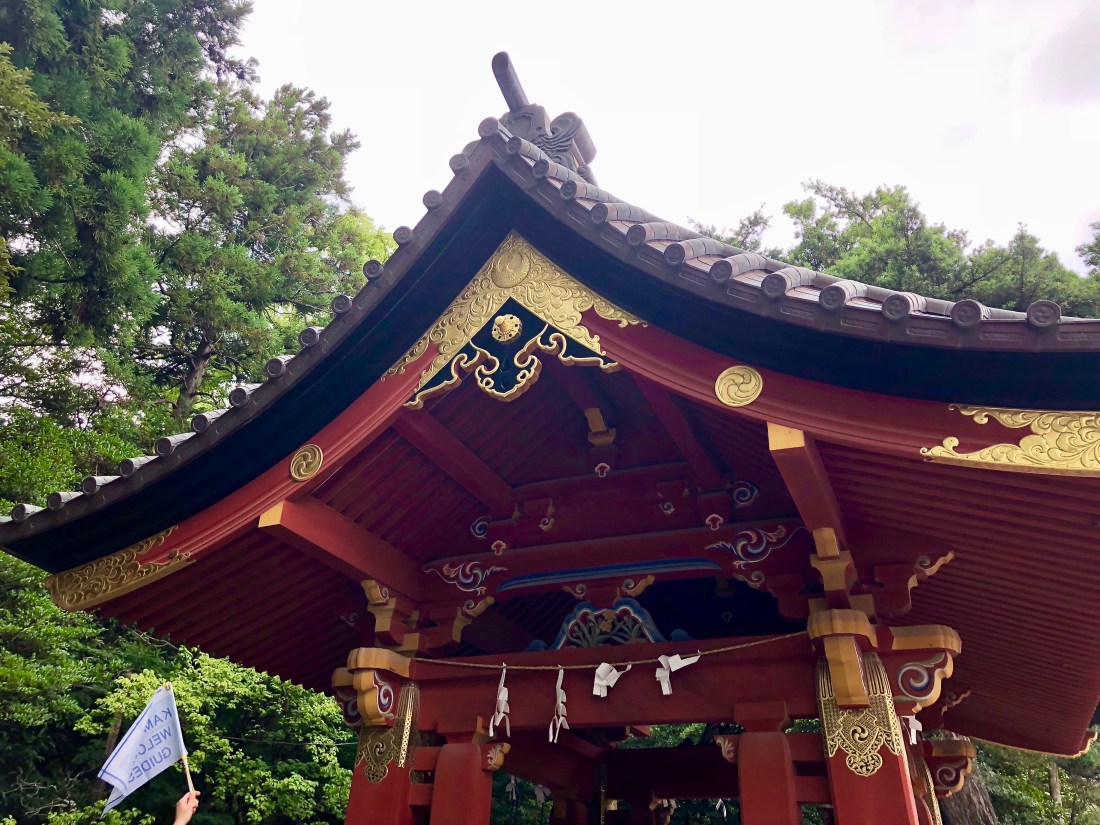 Before climbing the stairs to ender the Main Hall you first approach the Chozuya. The red structure is where worshippers wash their hands and rinse their mouths to purify themselves before approaching the main shrine. The basin is carved out of a huge rock from the Bizen region of western Japan and was presented by the wife of Tokugawa Hidetada, the 2nd Tokugawa shogun, in the 17th century, after she saw a dream telling her to do so. It is one of the few officially designated cultural treasures that the public are allowed to touch.