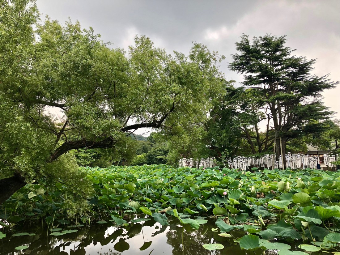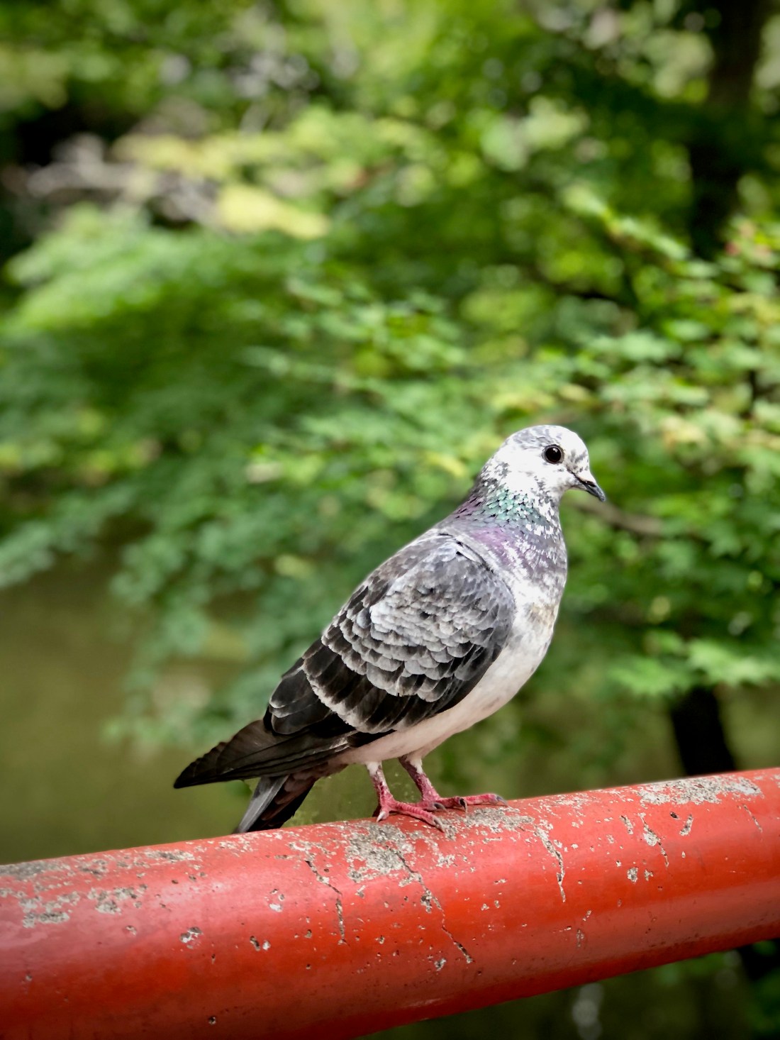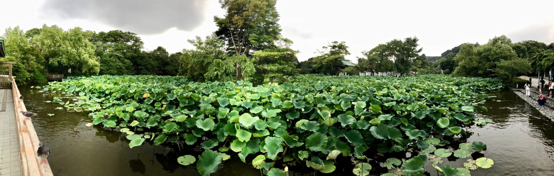 There are two ponds on the property. In the Genji Pond the lotus flowers are white, in honor of the Genji. The lotus in the Heike Pond on the left are red, the color of the Heike-the Taira clan. The Genji Pond has three islands which represent prosperity, while the Heike Pond has four islands, which represent death and destruction. At the time I didn’t know any of this at the time. I had to do a little digging into the significance. All I knew at the time was that they were beautiful full of large koi and carp that for 200 yen you could get a little bag of pellets to feed them. Apparently the turtles that share the pond with the fish know this as well and came right up to the rock shore happily to smile and pose for photos. And if you actually buy the pellets, the pigeons will also have no problem approaching you when they spot that little white bag… or landing on your shoulder…. or head… all at once.